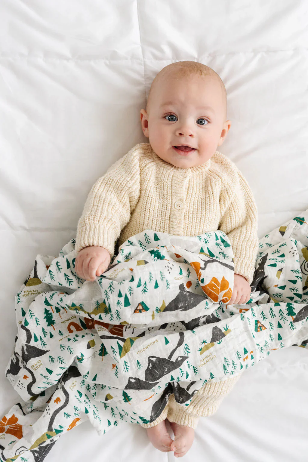 We took our National Parks print and made it mini! Take it anywhere because this swaddle is the perfect companion for any outdoor adventure. It features some of our favorite National Parks including: Yellowstone, Yosemite, Grand Teton, Rocky Mountain, Volcanoes, Joshua Tree, Redwood, Arches, Zion, Glacier, and Grand Canyon. We love muslin swaddles for their breathability and versitility. The loose weave of the fabric keeps your little one warm without overheating and the fibers are absorbent and soft. They’re a go to for us at bedtime, playtime, feeding time, cleanup, and any time. * 47x47 inches * 100% cotton muslin, and only gets softer with time * Lightweight and breathable * Machine washable